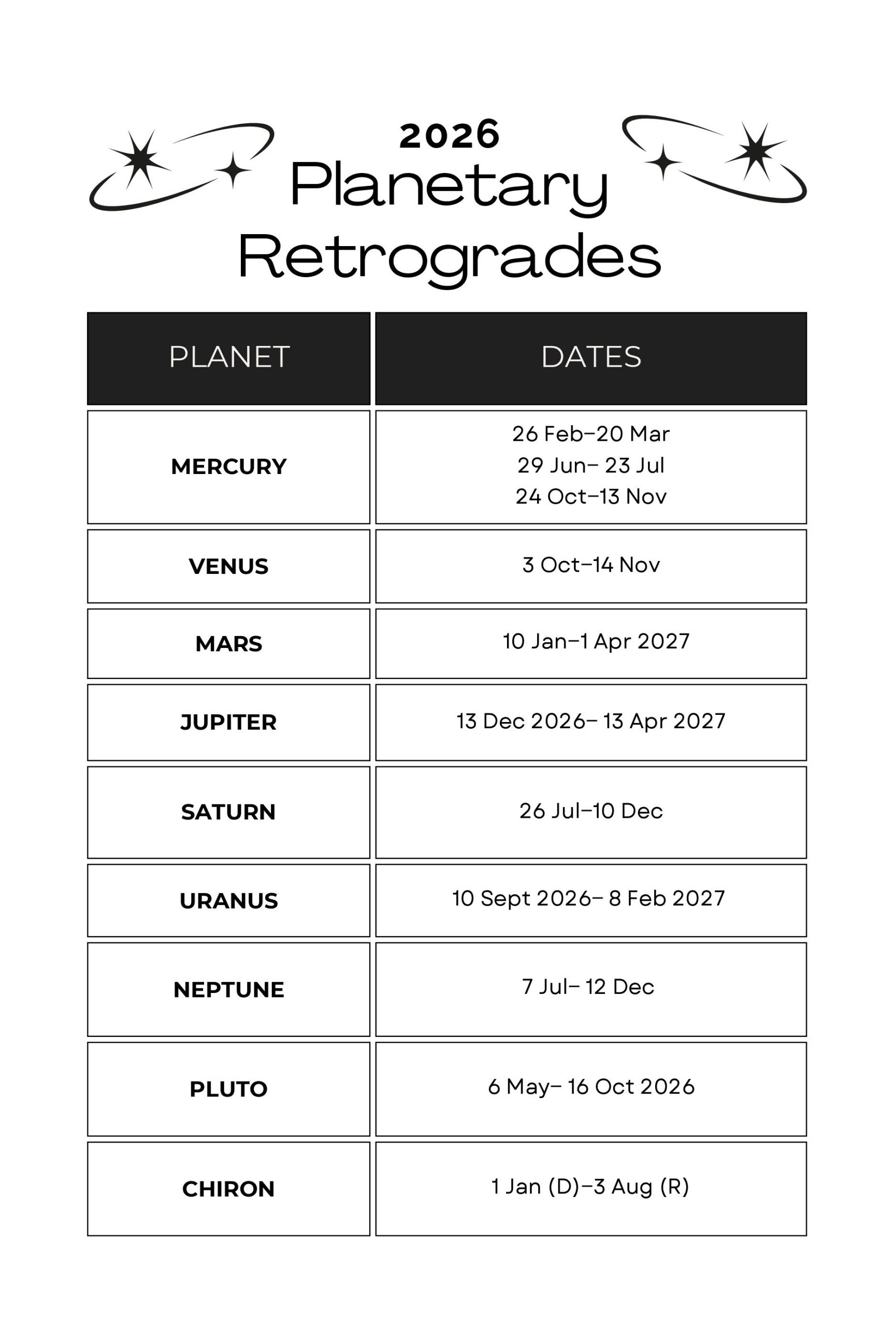 •  Key dates for 2026 planetary ingresses and retrogrades, eclipses in cosmic guide (front matter)